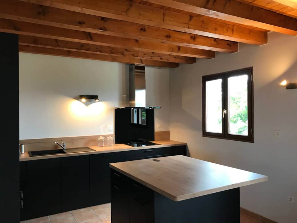 -rez-de-chaussée: séjour avec poële à granulés, TV, internet, wifi, jeux de société, cuisine ouverte entièrement neuve posée le 15 juin 2020 (lave-vaisselle, micro-ondes, plaque induction avec four pyrolise, combiné réfrigérateur/congélateur, grille-pain, cafetière à dosettes DOLCE GUSTO, bouilloire, batteur, mixeur, raclette (sur demande), fer à repasser, aspirateur,